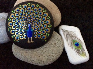 2022Gedotte pauw op een gegoten steen. Pauwenveer op een santorinisteen.